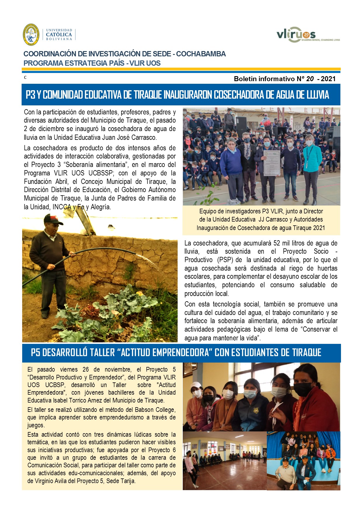 Tiraque, Emprendedor, Agua, P1, P5
